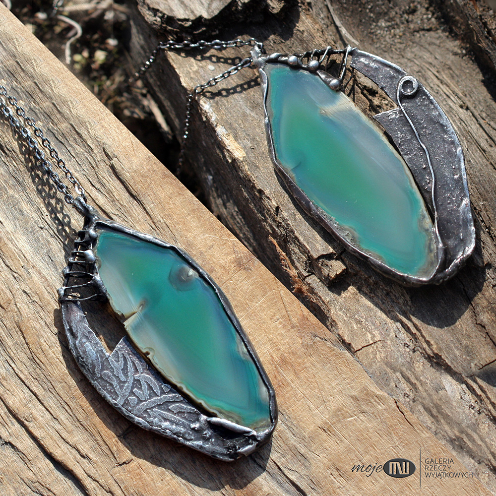 - Biżuteria w mojej galerii wykonana jest ze srebra, miedzi, miedzi pokrytej cyną, innych metali oraz przedmiotów takich jak kamienie, drewno, szkło, skóra i inne.