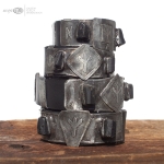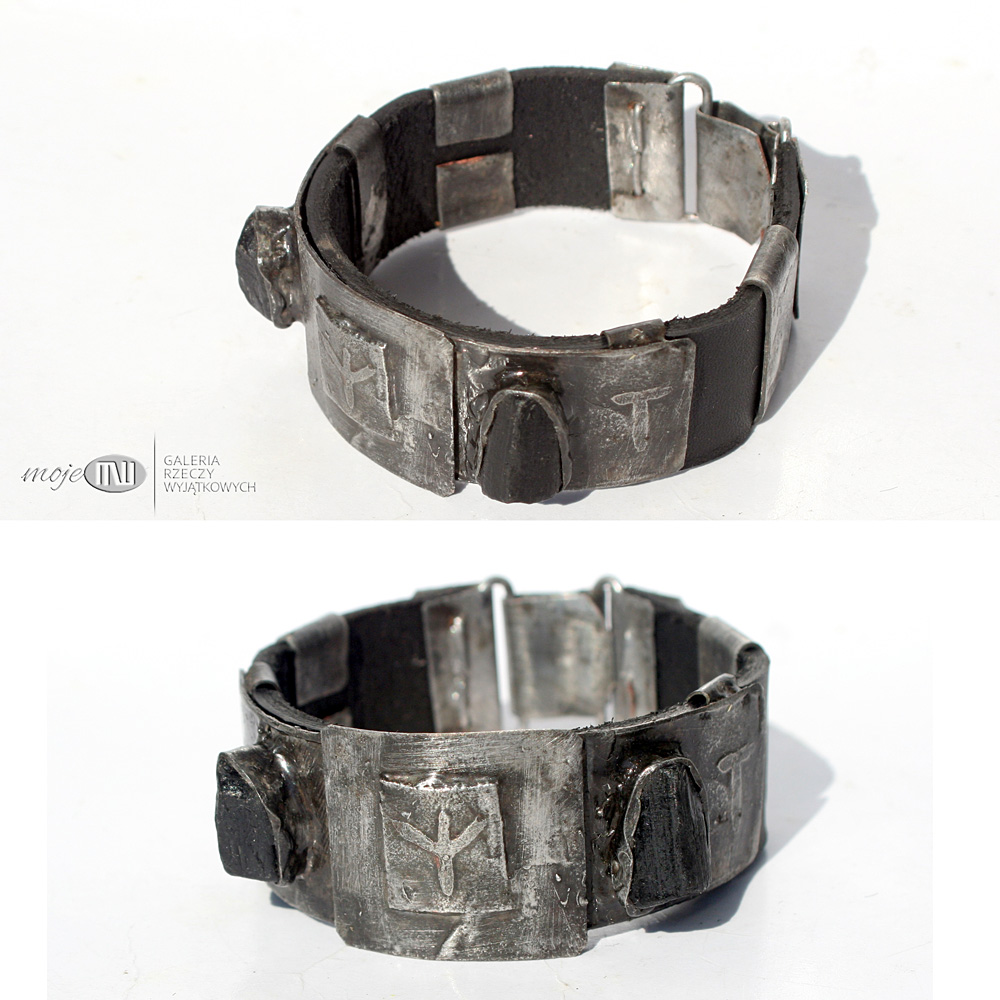 Zrobione są z miedzianej blachy, w której wytrawiłam wybraną runę oraz inicjały. Miedź jest pokryta cyną i patynowana. Charakteru bransoletom dodają czarne turmaliny.