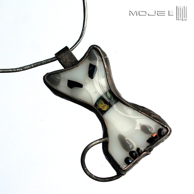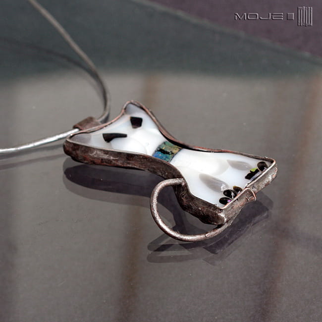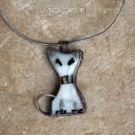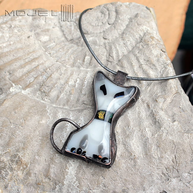 Biały kot - szklany wisiorek wykonany przeze mnie metodą fusingu, czyli stapiania szkła w wysokiej temperaturze.