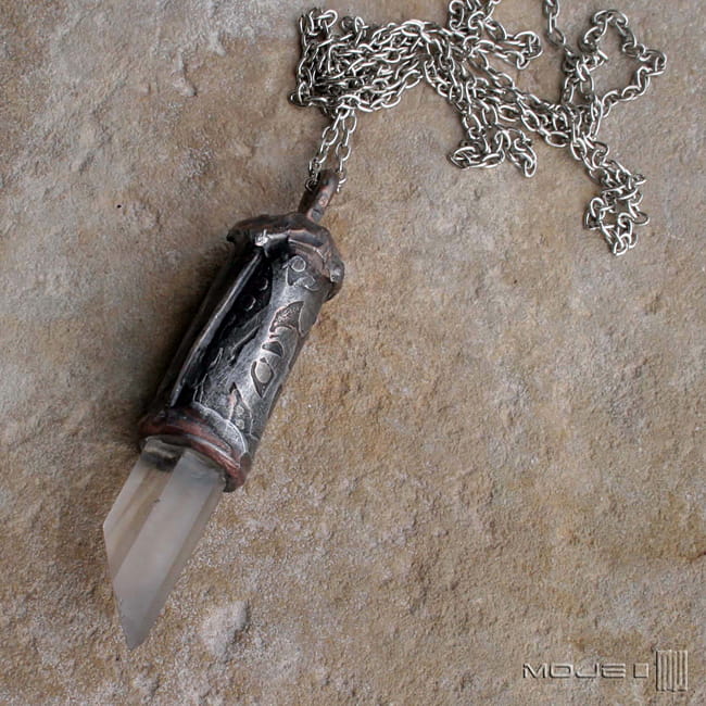 - Biżuteria w mojej galerii wykonana jest ze srebra, miedzi, miedzi pokrytej cyną, innych metali oraz przedmiotów takich jak kamienie, drewno, szkło, skóra i inne.