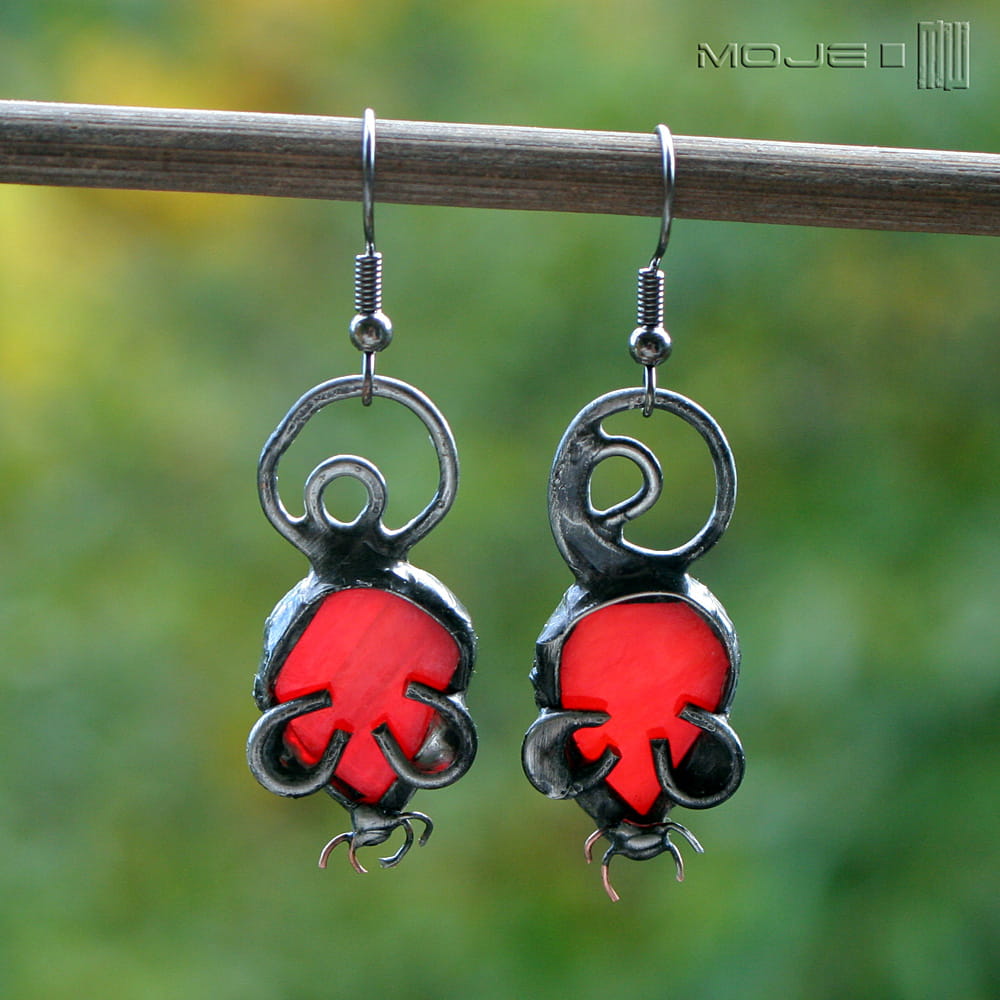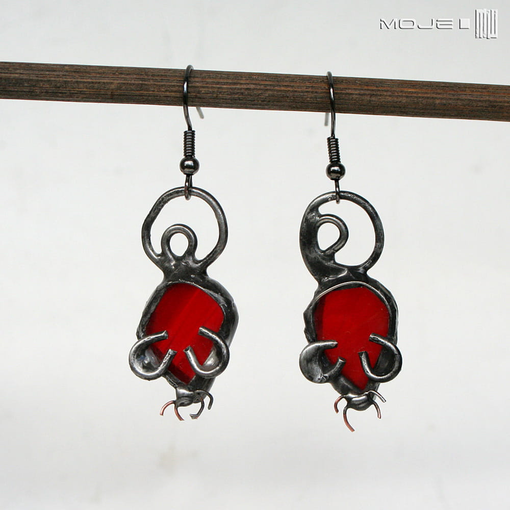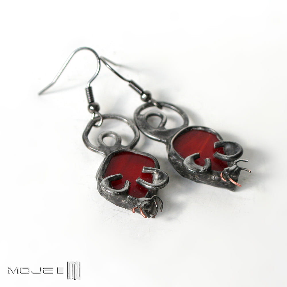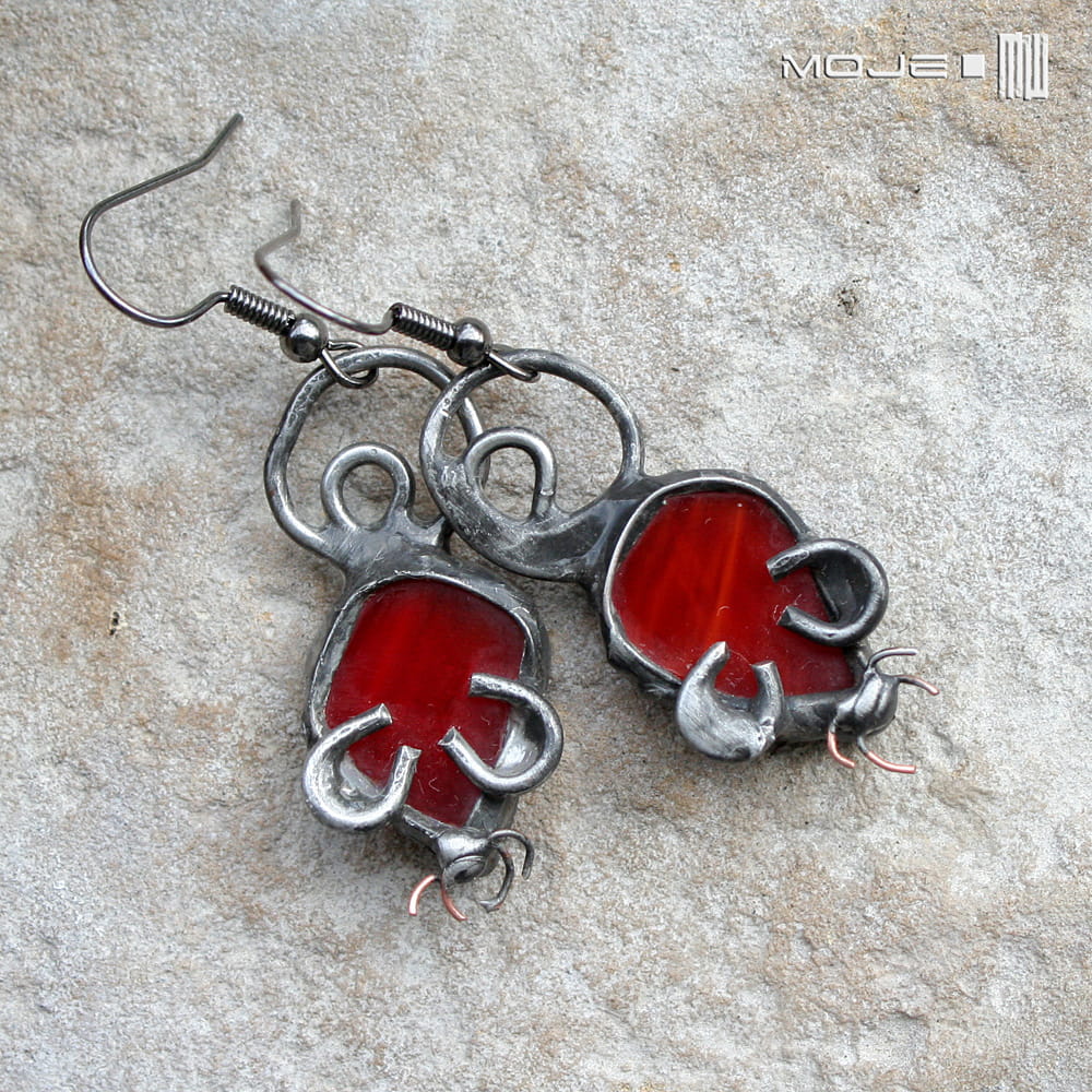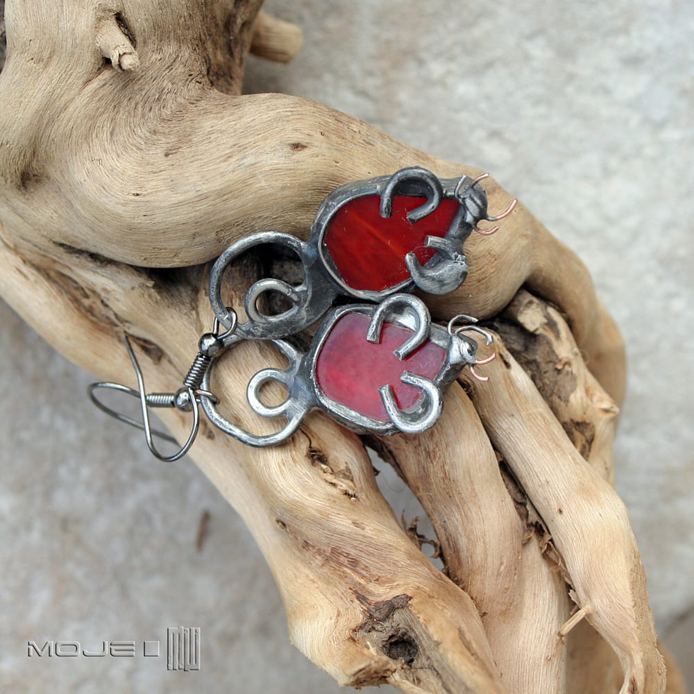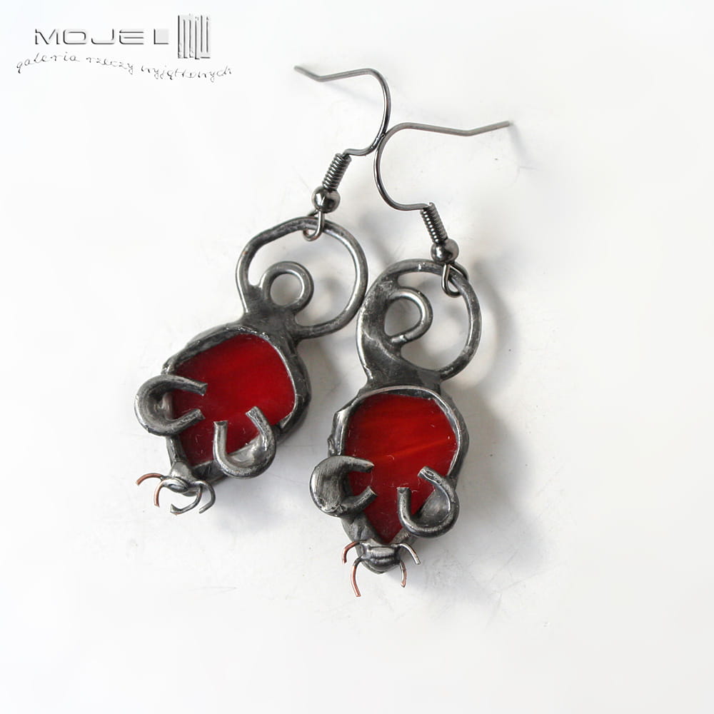 Myszki - kolczyki wykonane przeze mnie z czerwonego szkła.