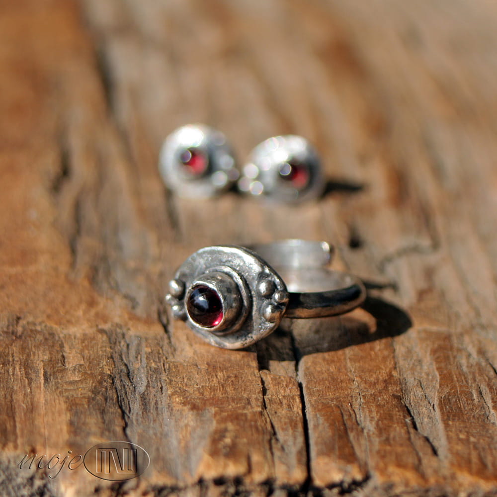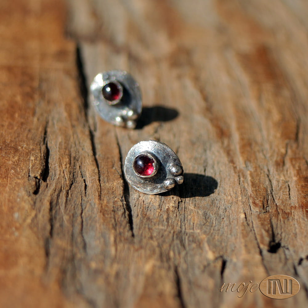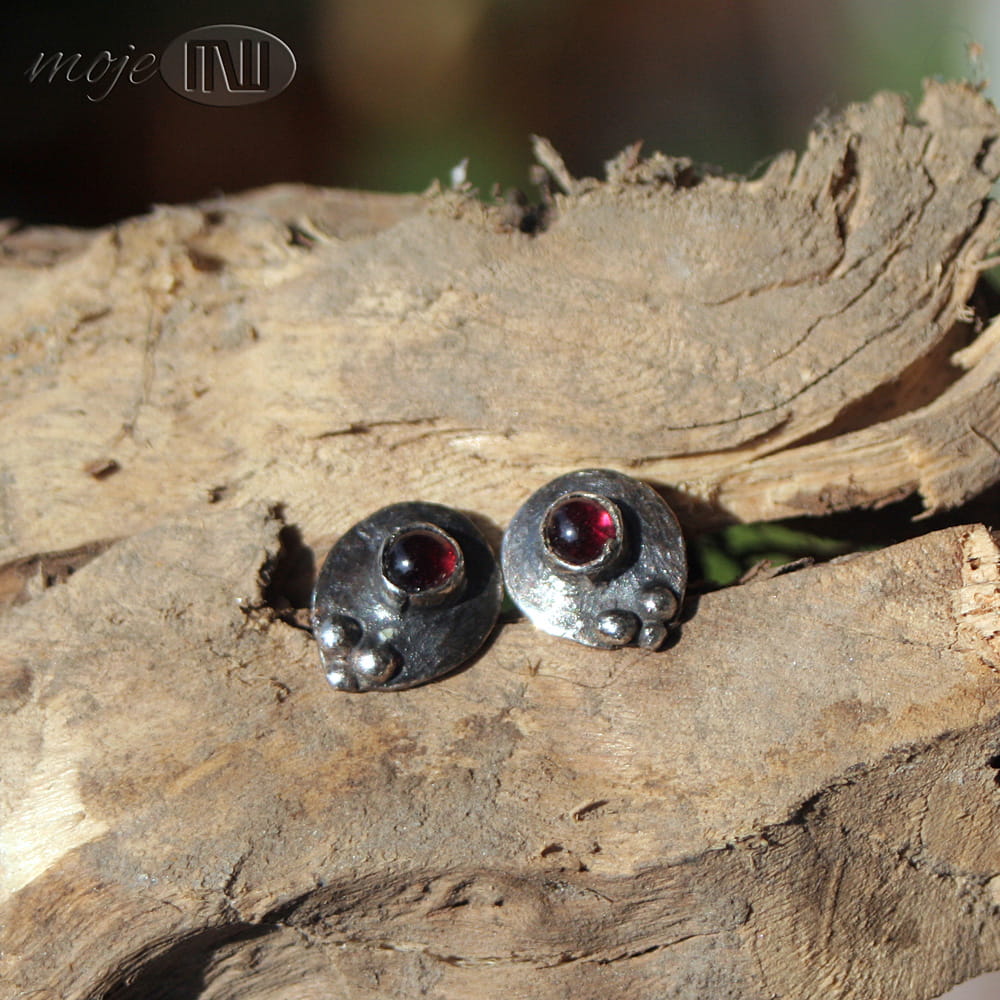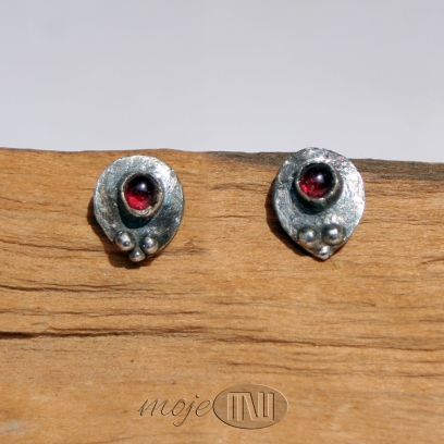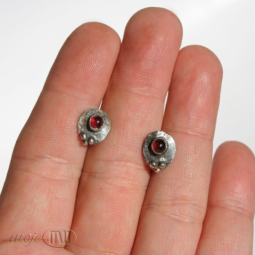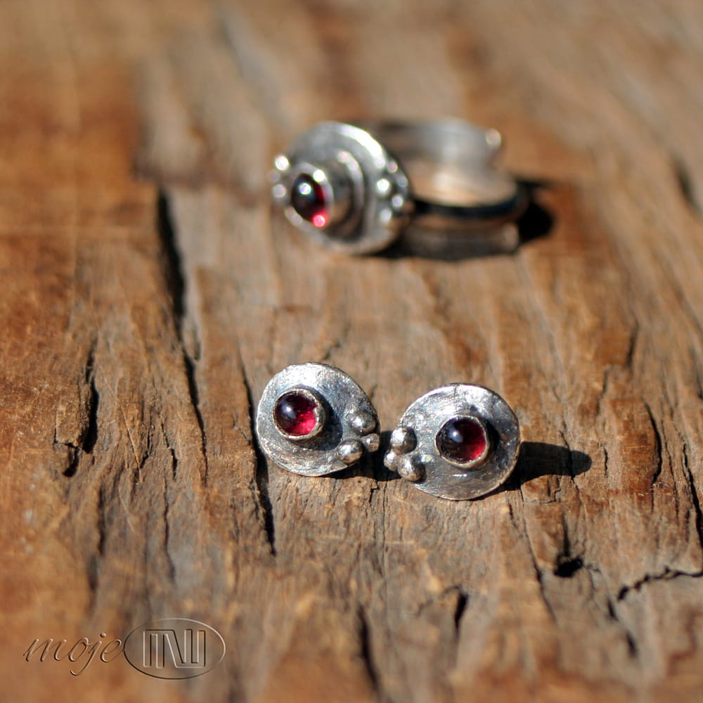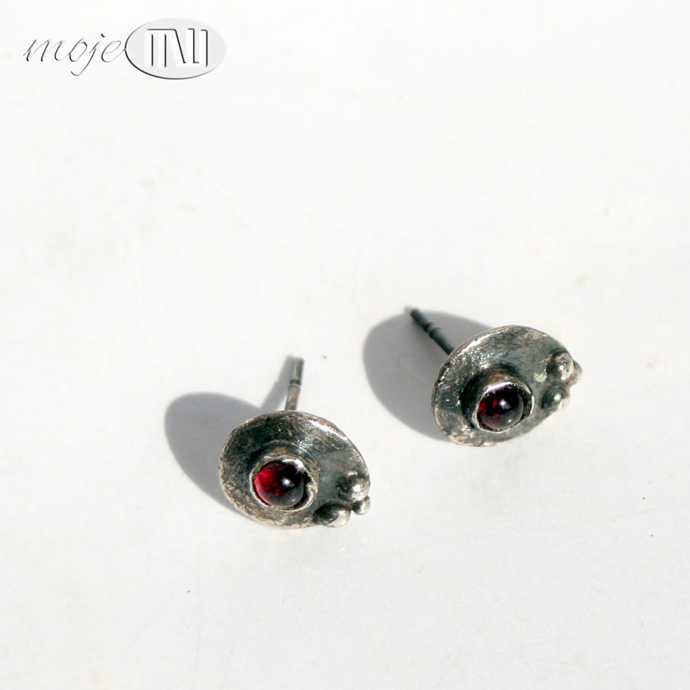 Drobne, ale urokliwe kolczyki ze srebra i granatów.
