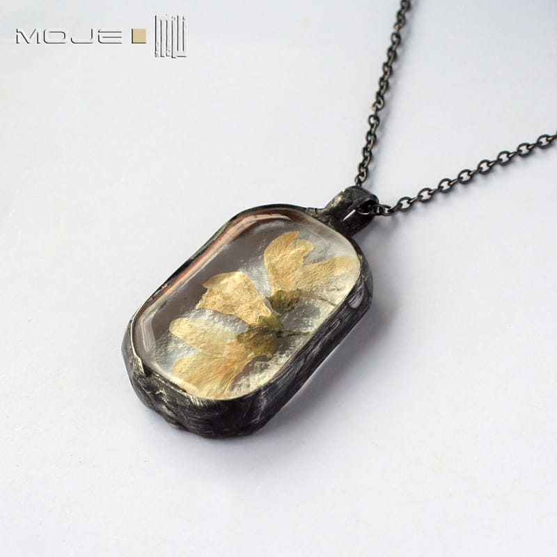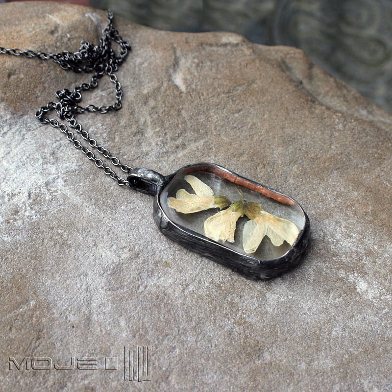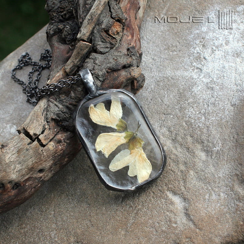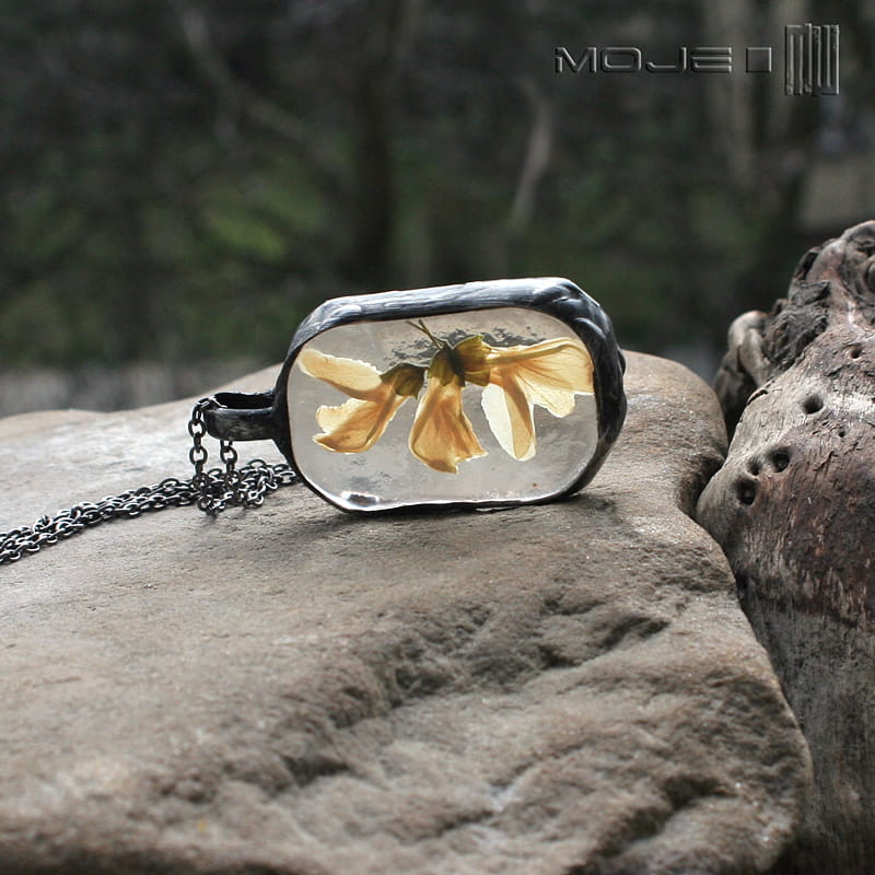 Czarowny wisior-zielnik z zamkniętym w jego wnętrzu fragmentem wiosny.