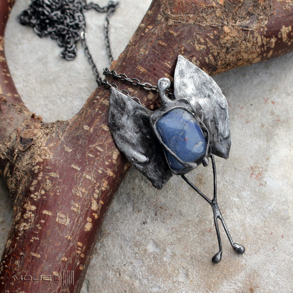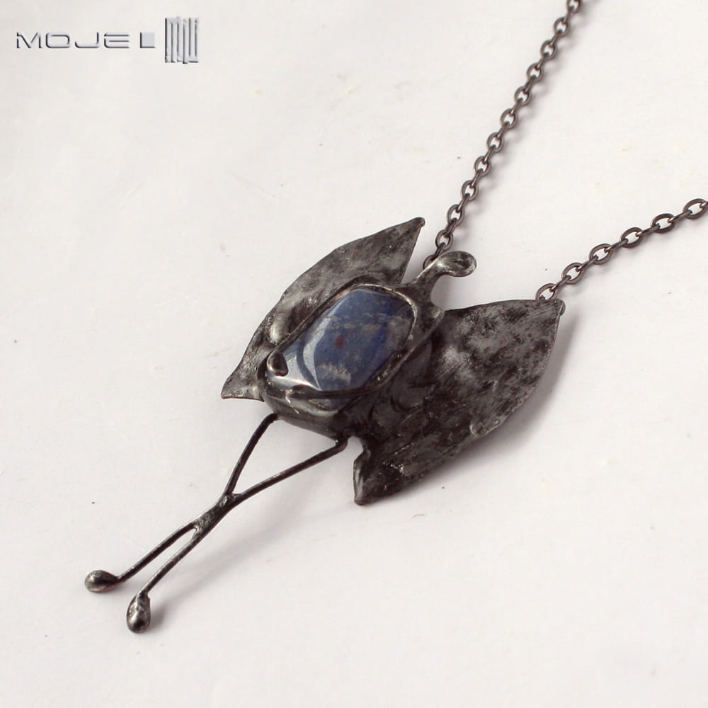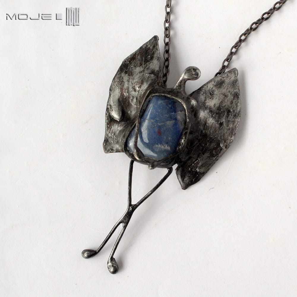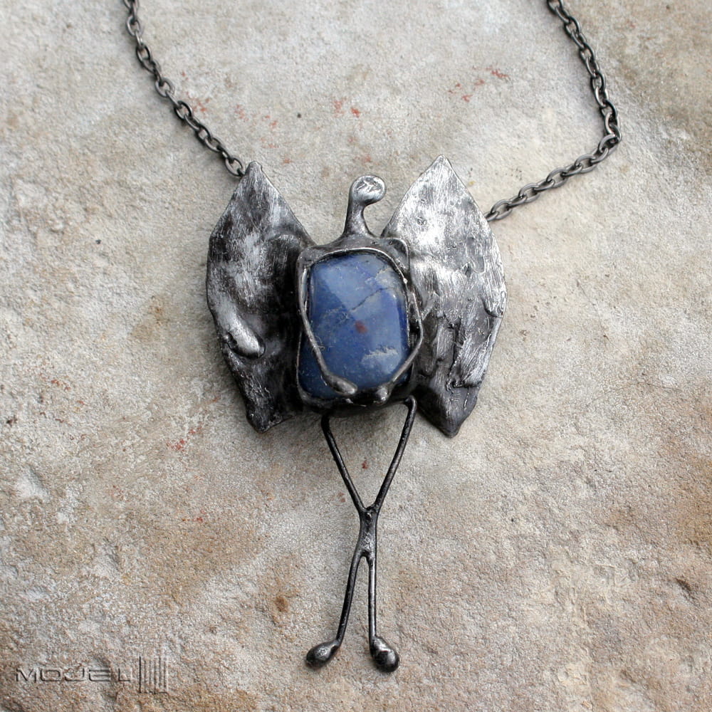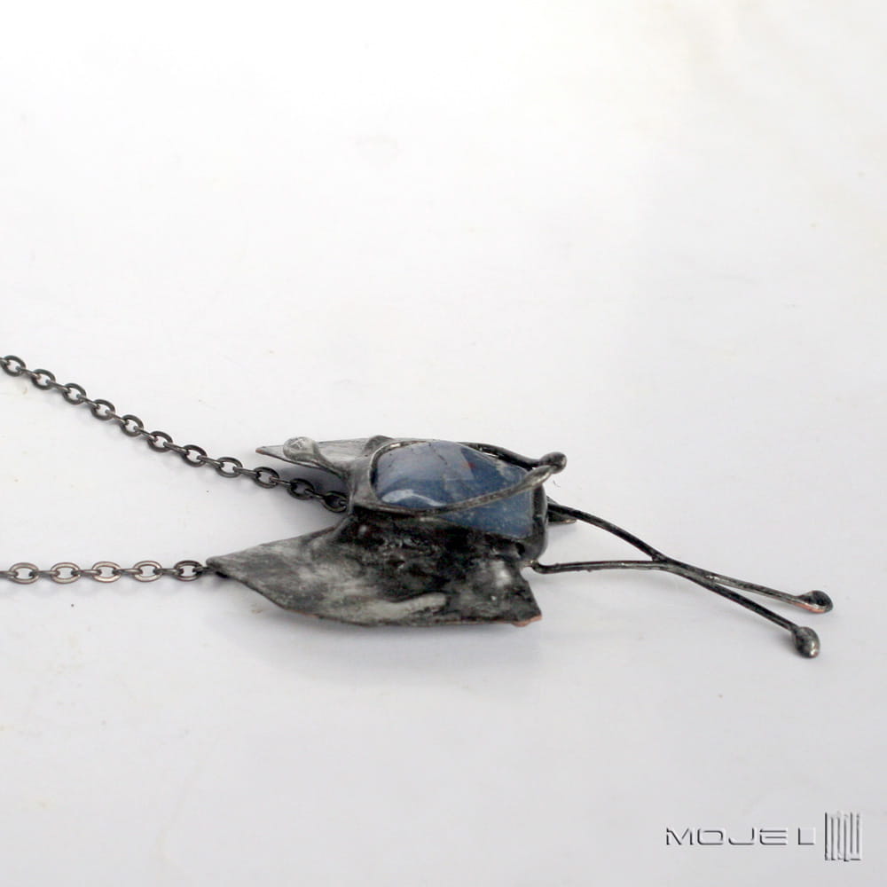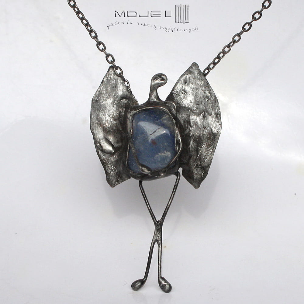Wisior - aniołek. Zrobiłam go z niebieskiego kwarcu oraz miedzi - pokrytej cyną, patynowanej i przecieranej. Może być pociechą w trudniejszych chwilach, przynosić szczęście, a na pewno gdy na niego spojrzysz, wywoła uśmiech na twarzy.