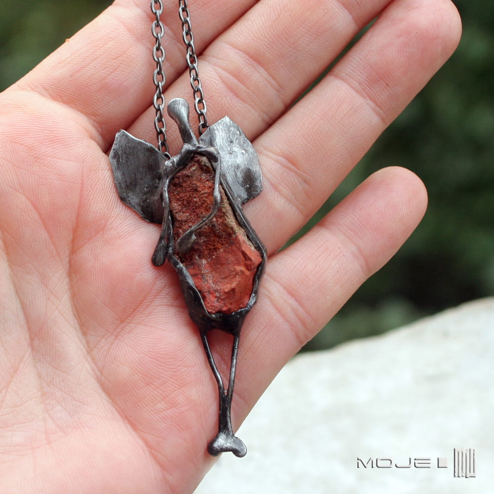 - Biżuteria w mojej galerii wykonana jest ze srebra, miedzi, miedzi pokrytej cyną, innych metali oraz przedmiotów takich jak kamienie, drewno, szkło, skóra i inne.