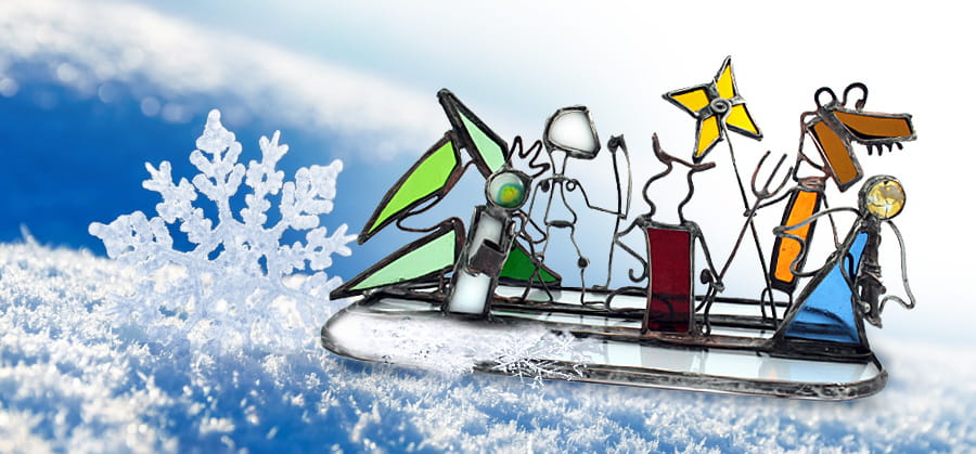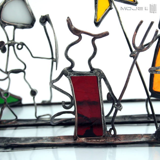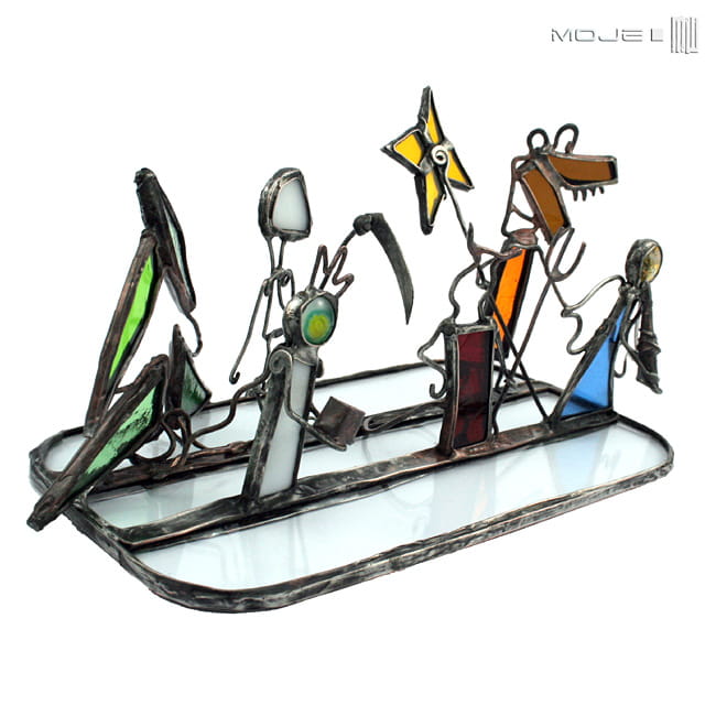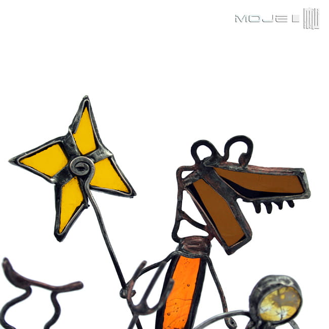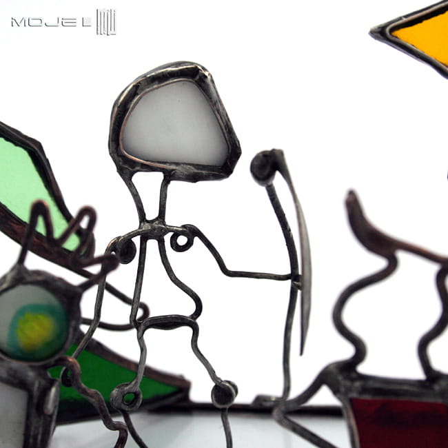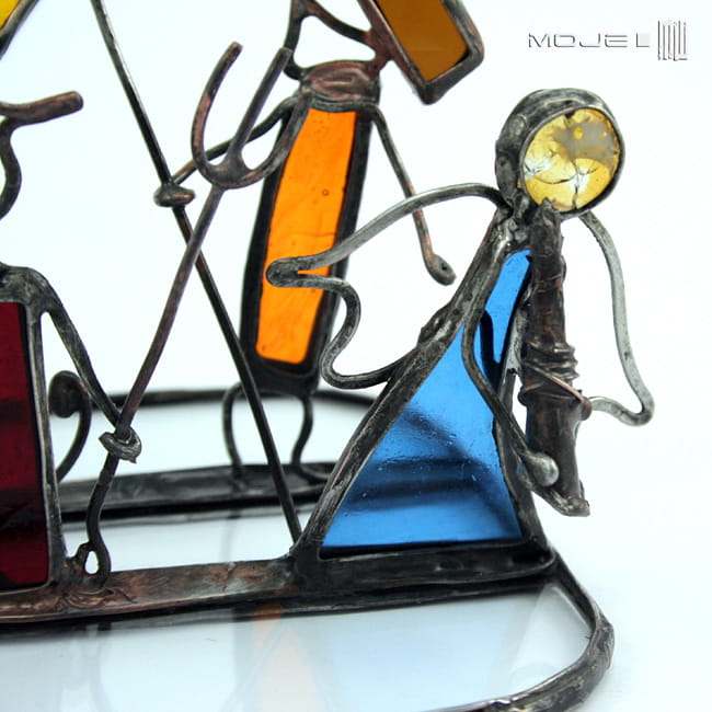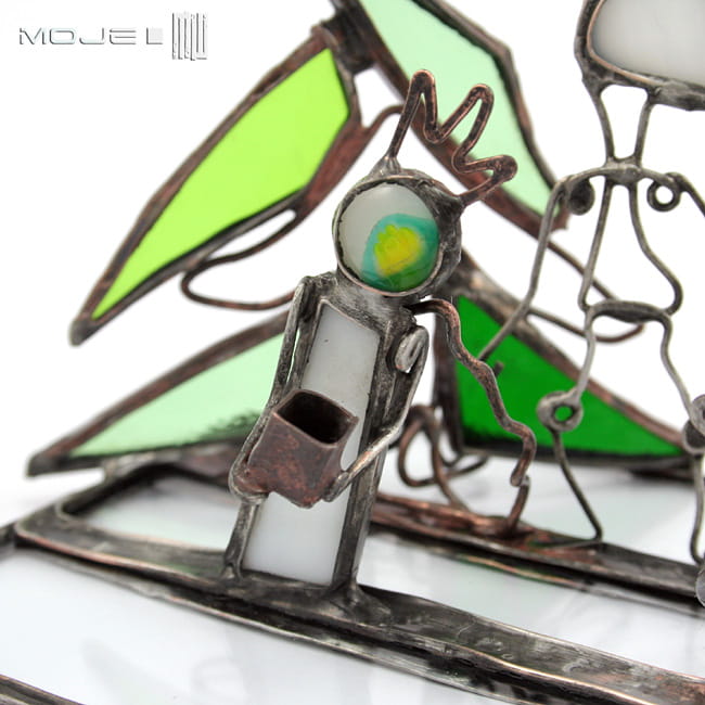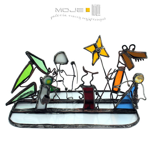 Ta cudna gromadka zrobiona jest ze szkła witrażowego i miedzi metodą Tiffany, są cynowani, patynowani i przecierani.
