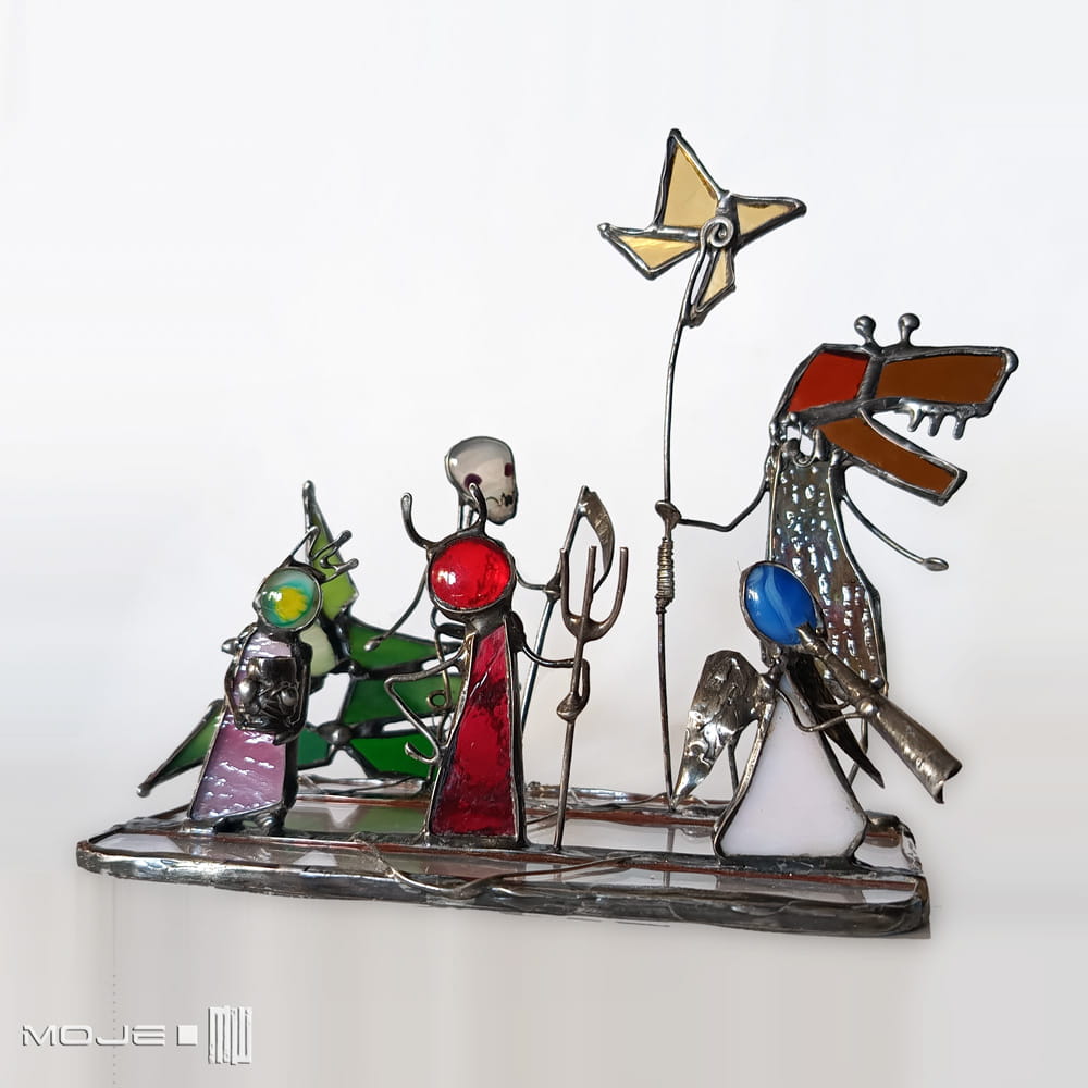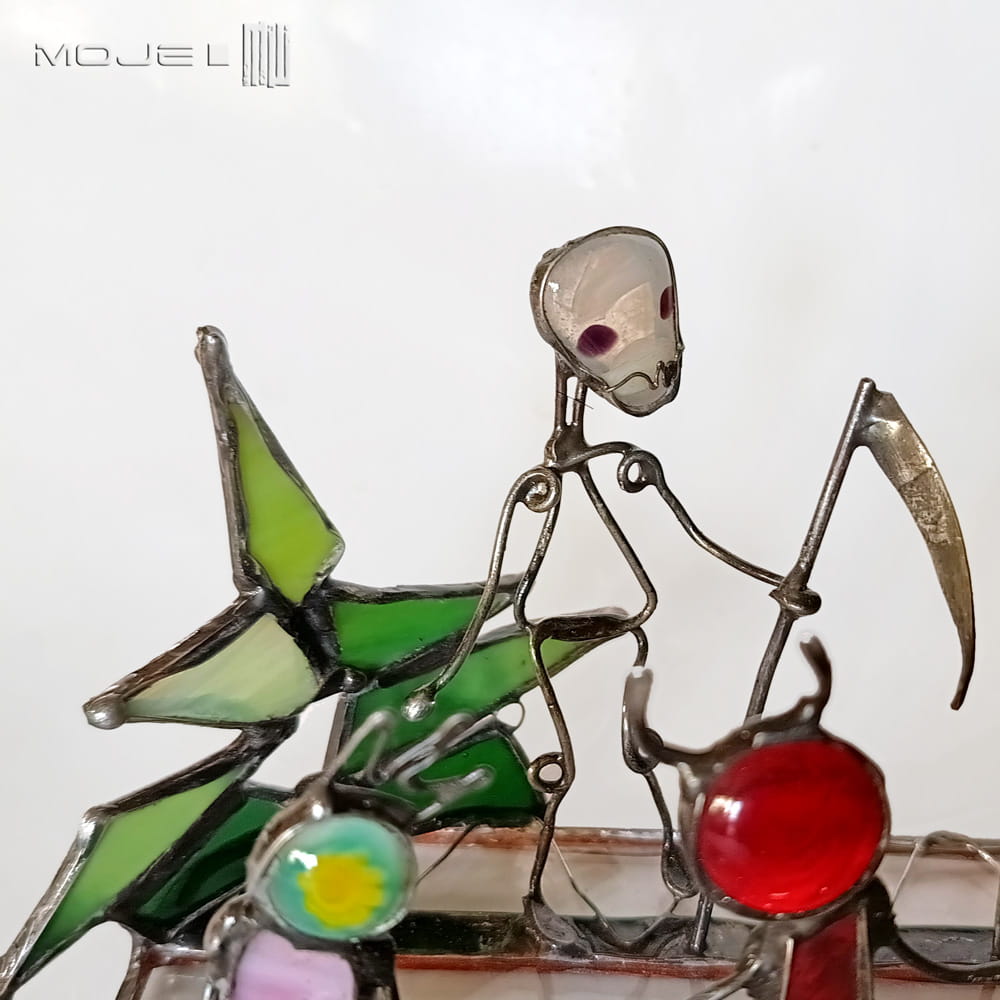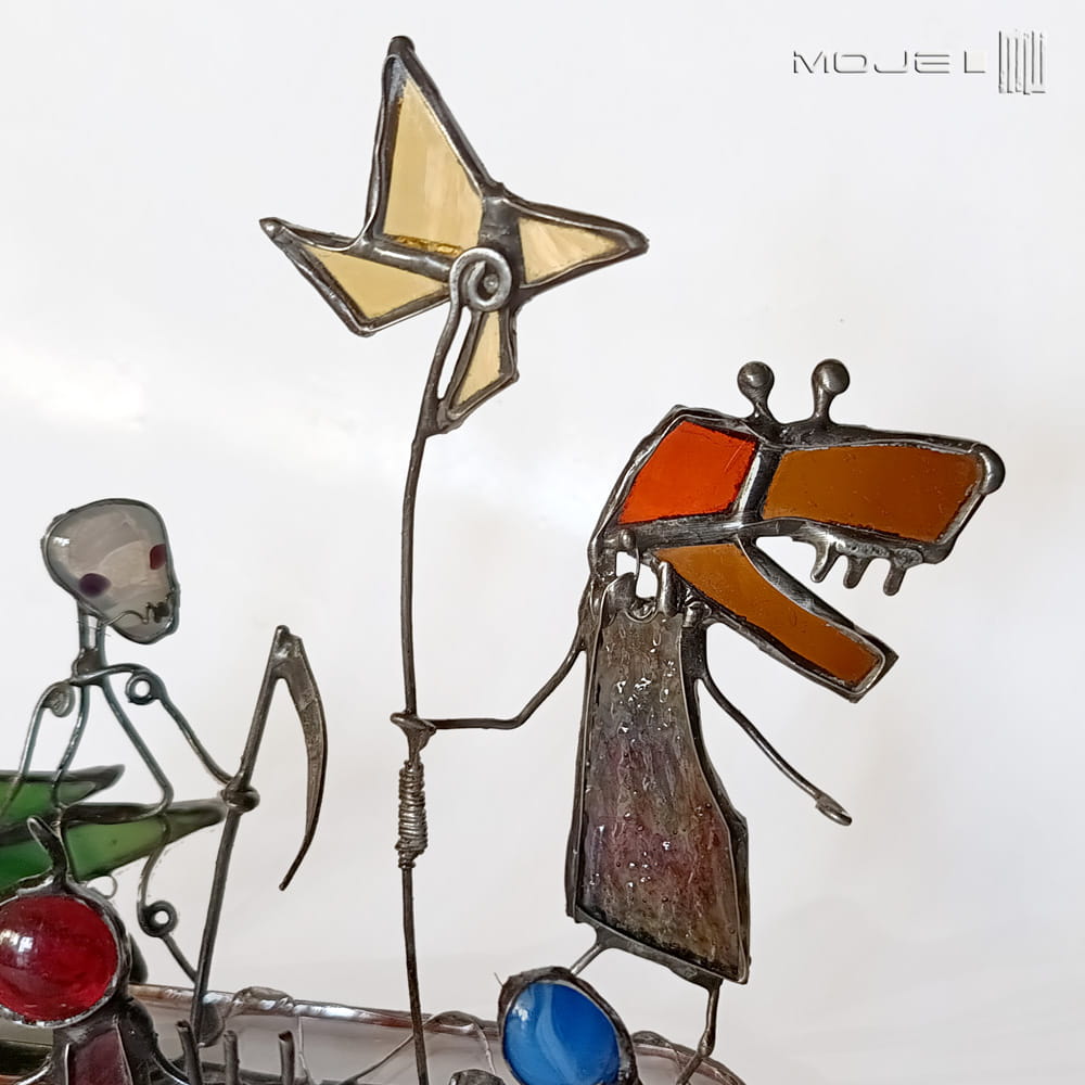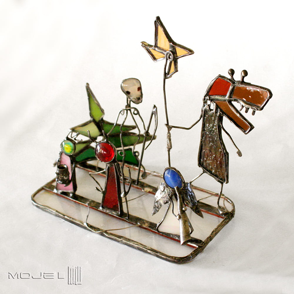 Ta cudna gromadka zrobiona jest ze szkła witrażowego i miedzi metodą Tiffany, są cynowani, patynowani i przecierani.