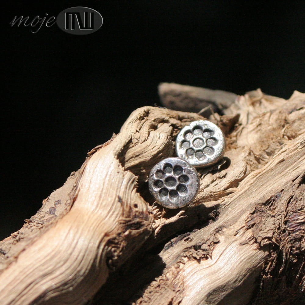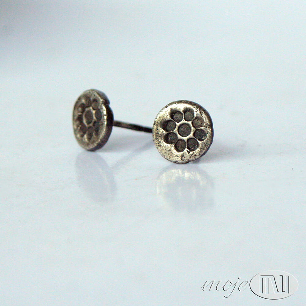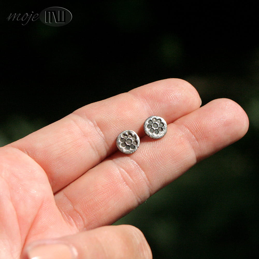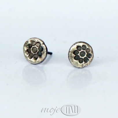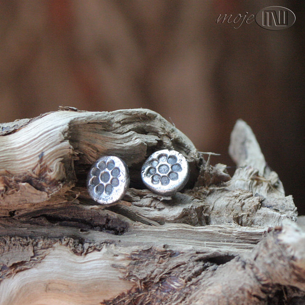 Zrobiłam je ze srebra wysokiej próby (min. 925, a może dochodzić do 980). Kolczyki są oksydowane i przecierane dla wydobycia rysunku.