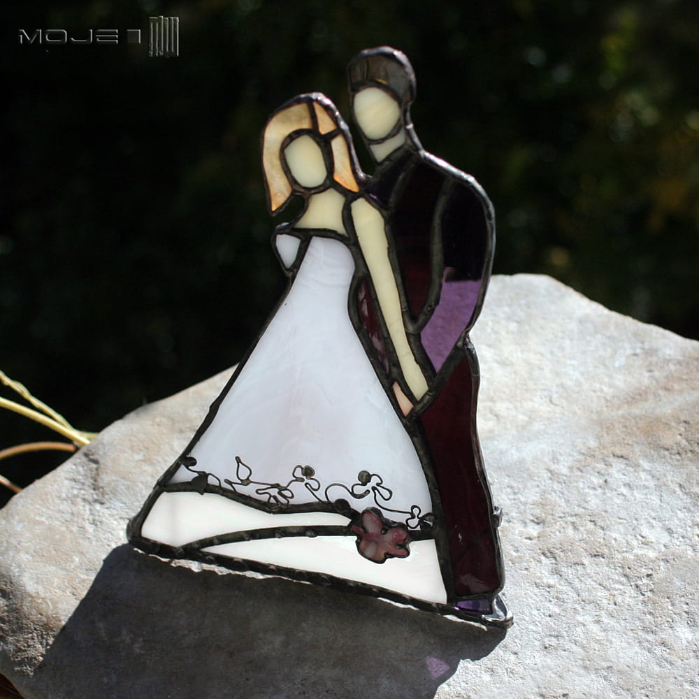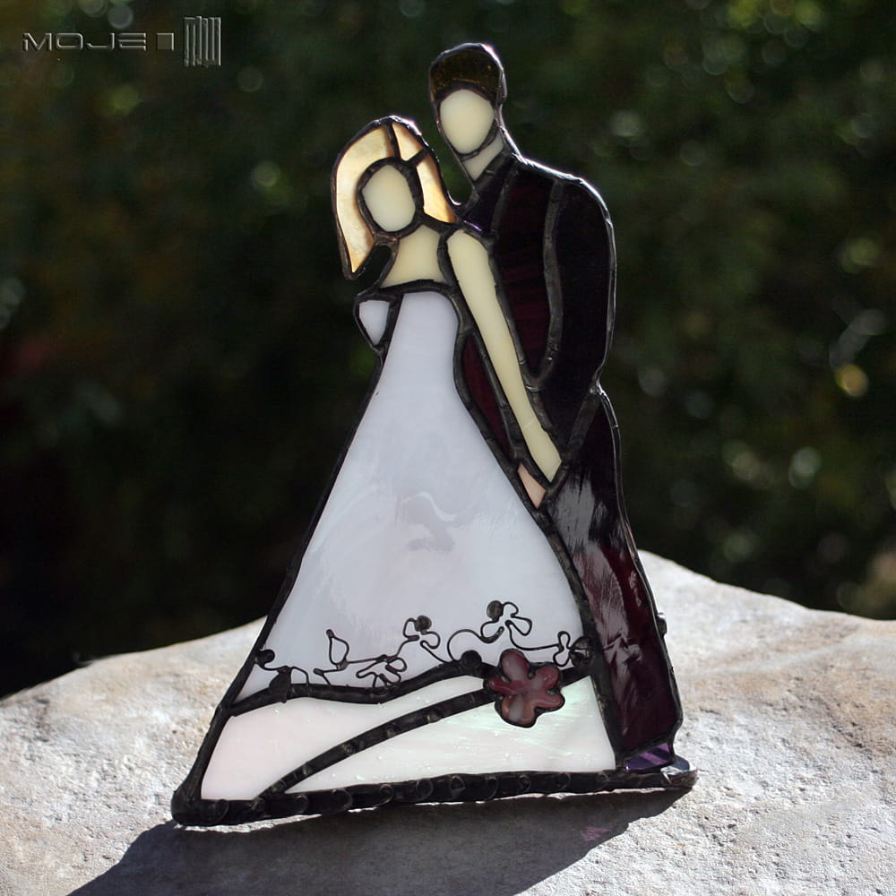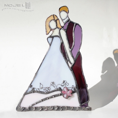 Młoda Para - stojący dekor ze szkła witrażowego.