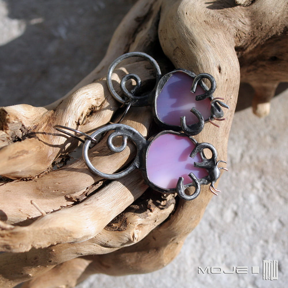 - Biżuteria w mojej galerii wykonana jest ze srebra, miedzi, miedzi pokrytej cyną, innych metali oraz przedmiotów takich jak kamienie, drewno, szkło, skóra i inne.