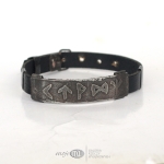 Energetyczna runiczna bransoleta z miedzi pokrytej cyną oraz czarnego płaskiego rzemienia