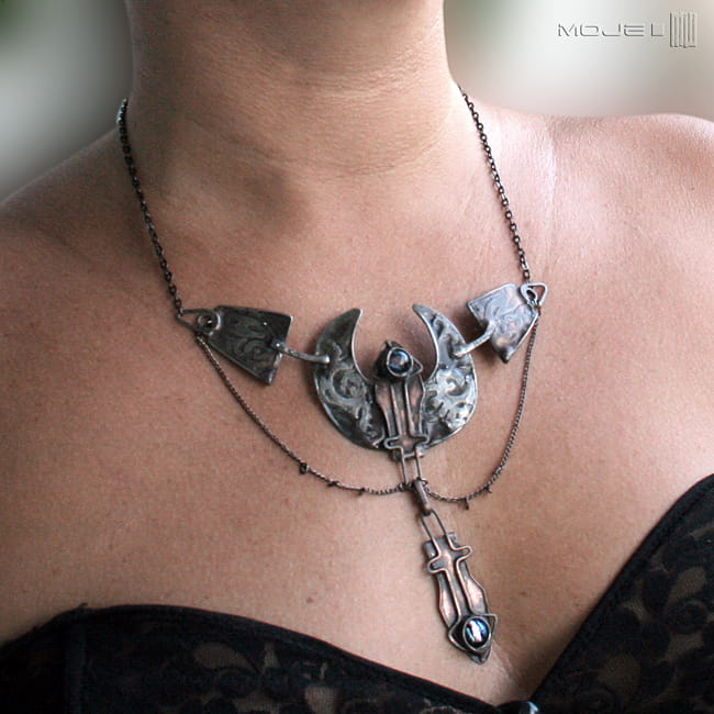 Duży i efektowny naszyjnik w stylu gotyckim.
