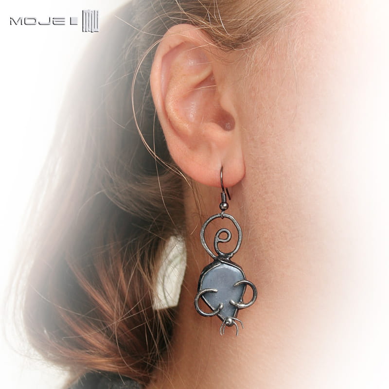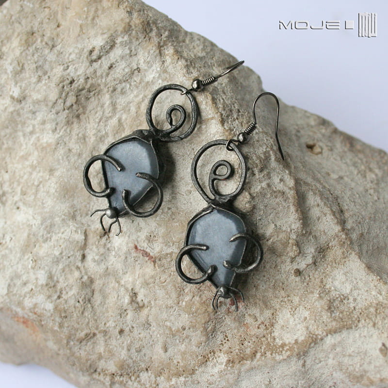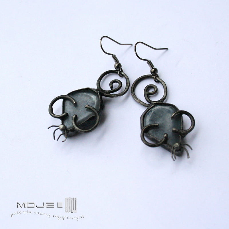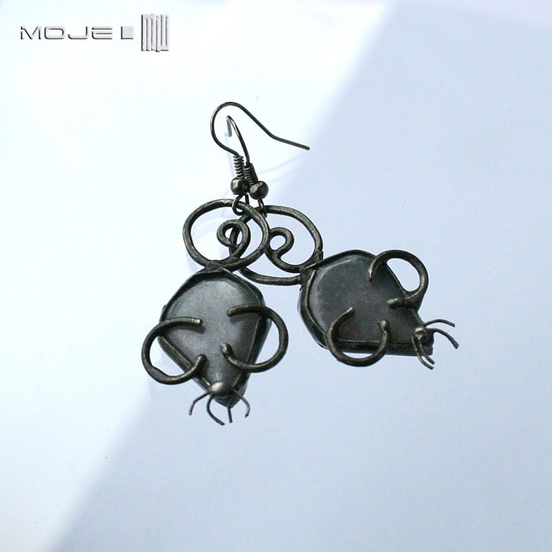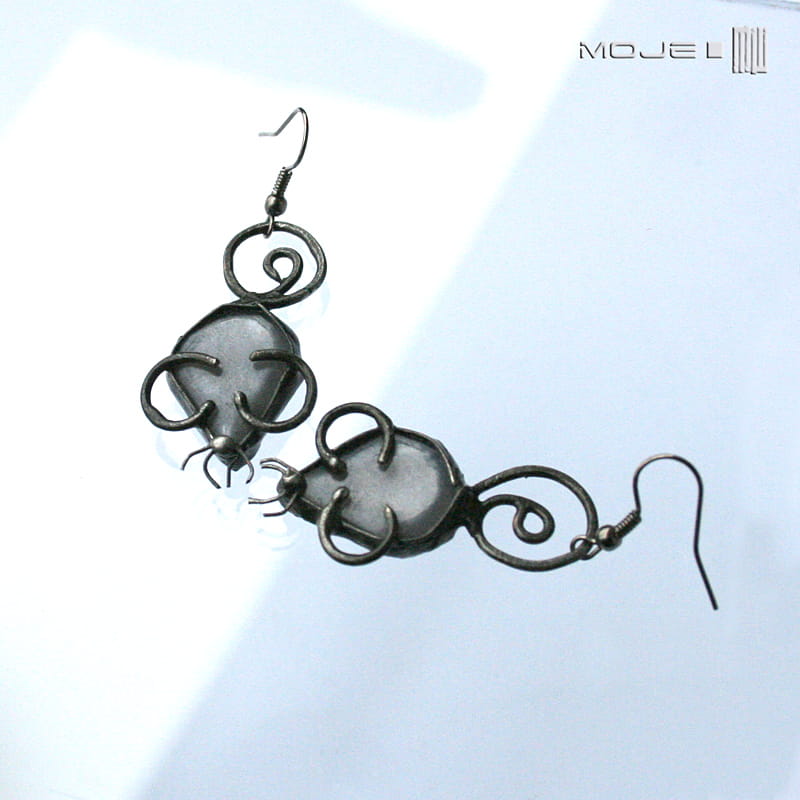 Myszki - szklane kolczyki wykonane przeze mnie z szarego szkła metodą fusingu, czyli topienia szkła w wysokiej temperaturze.