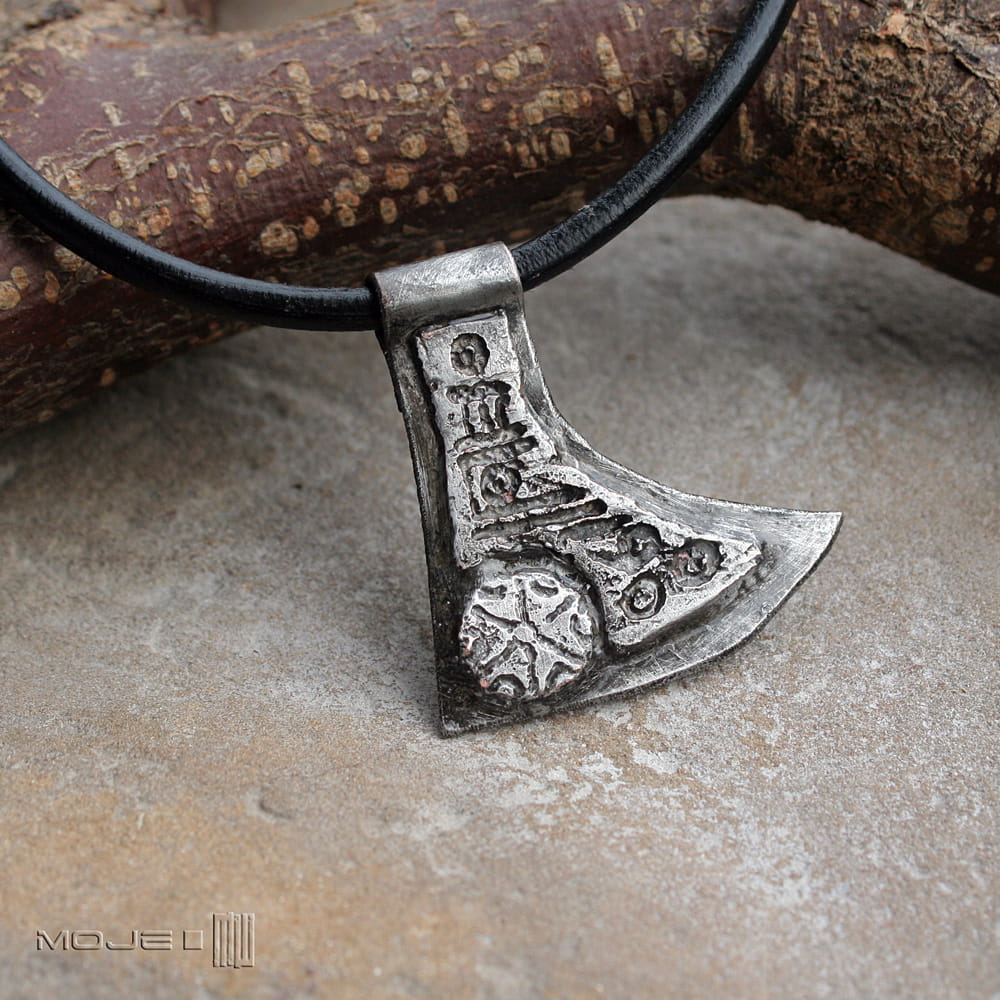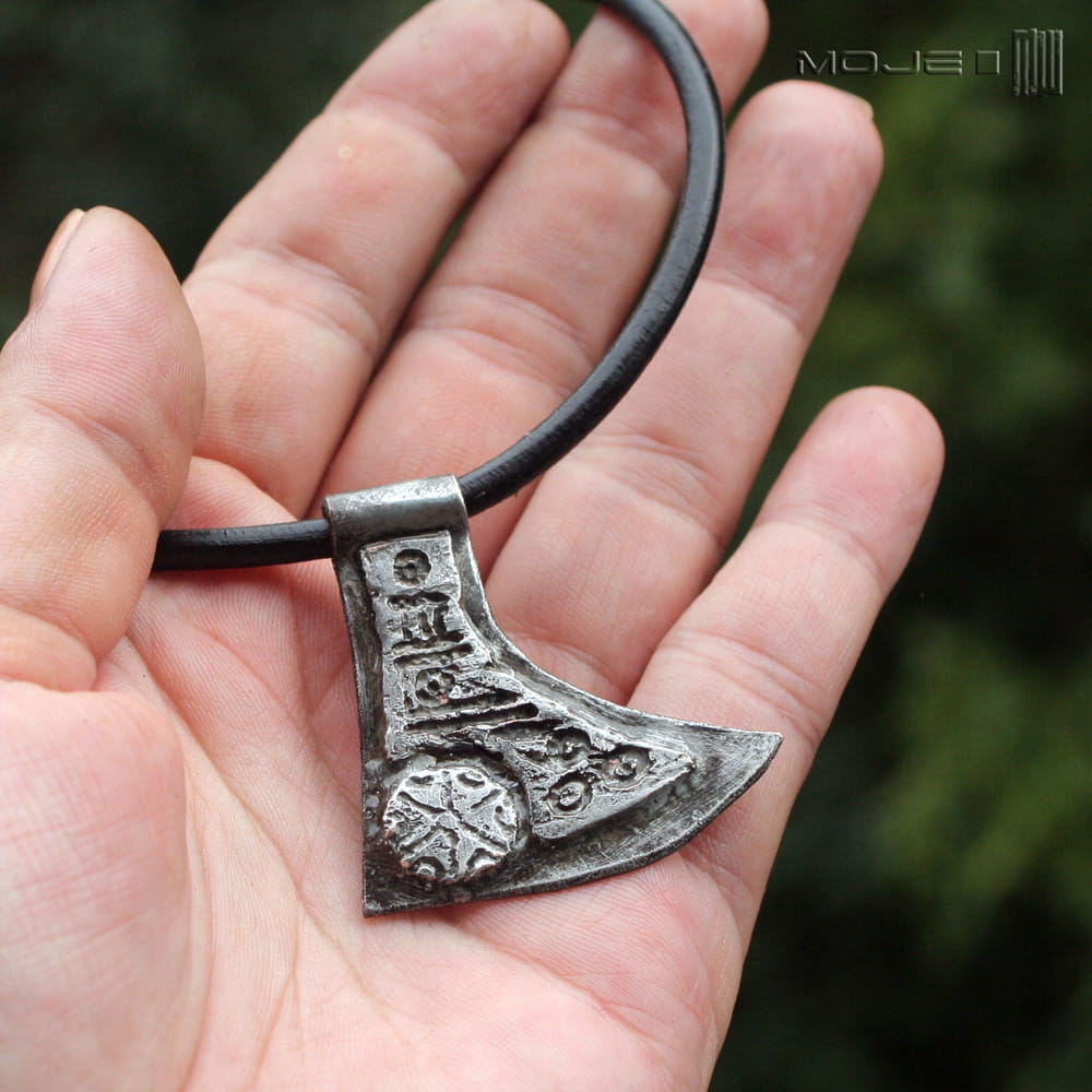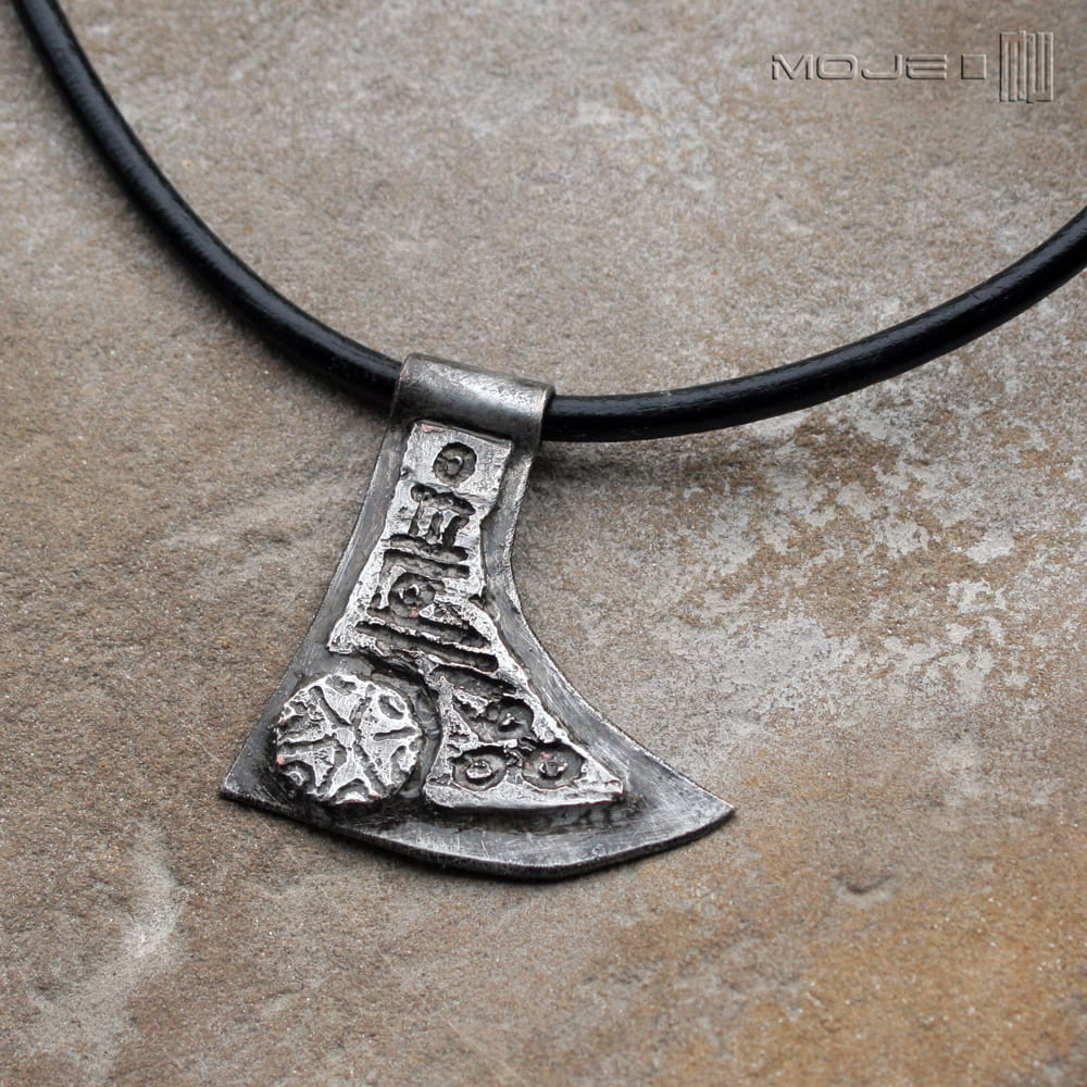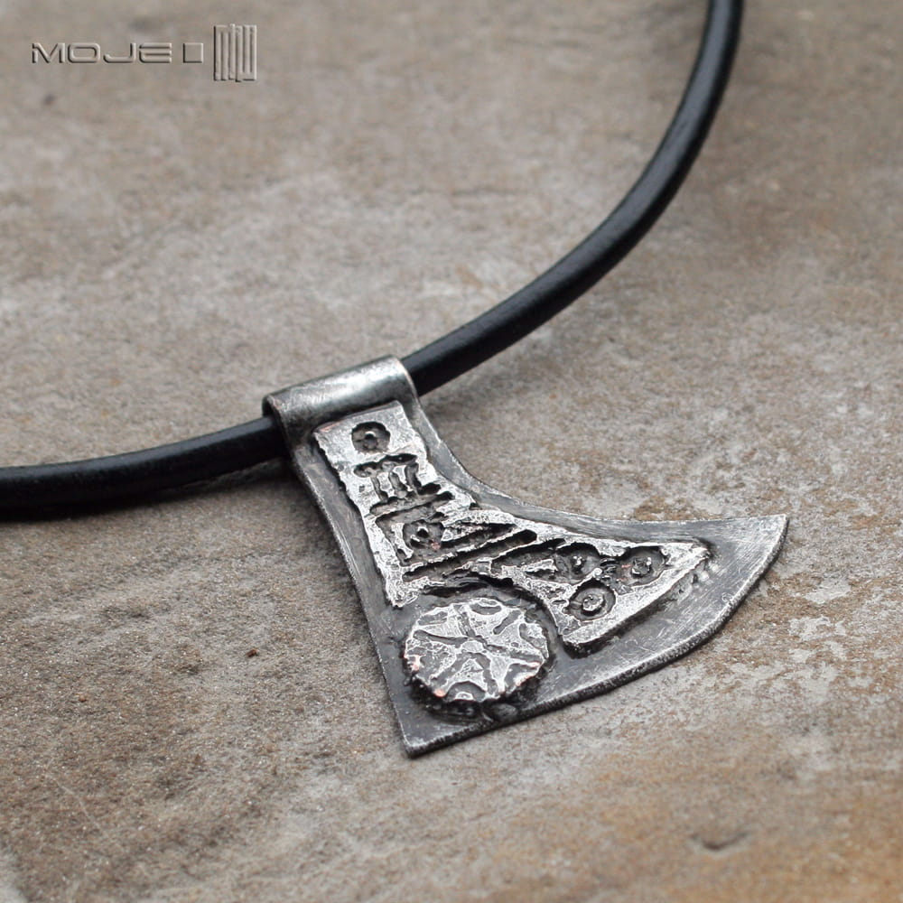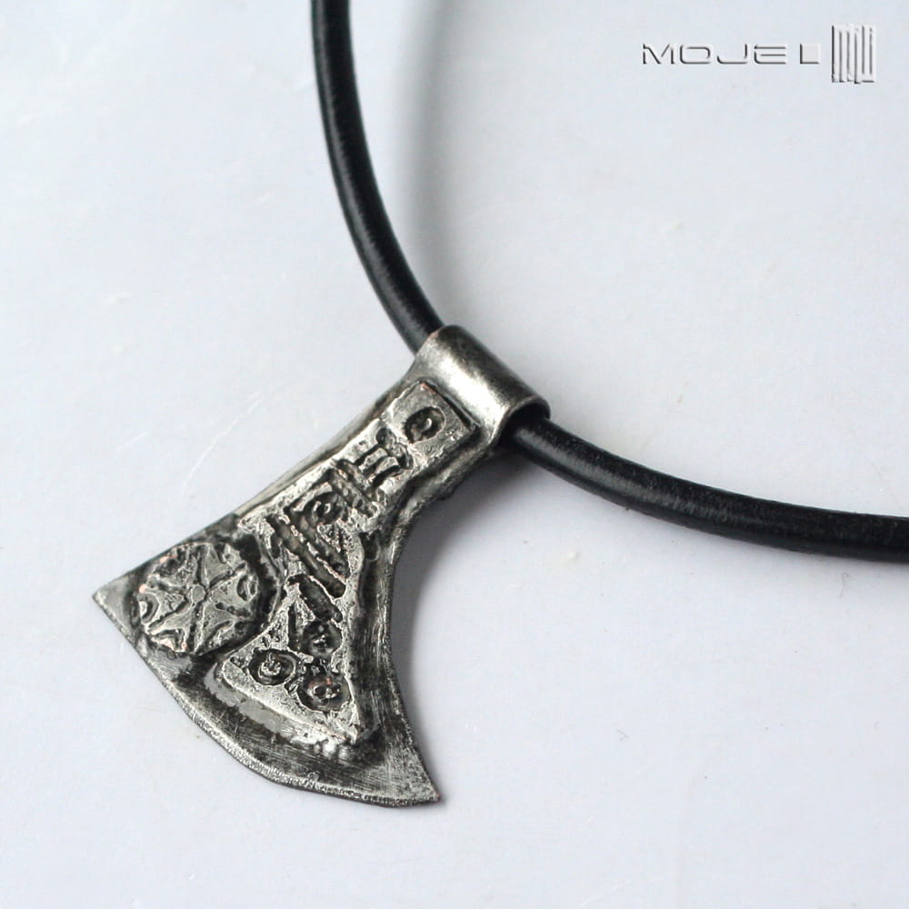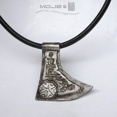Wisiorek wzorowany na amuletach przedstawiających topór Peruna.