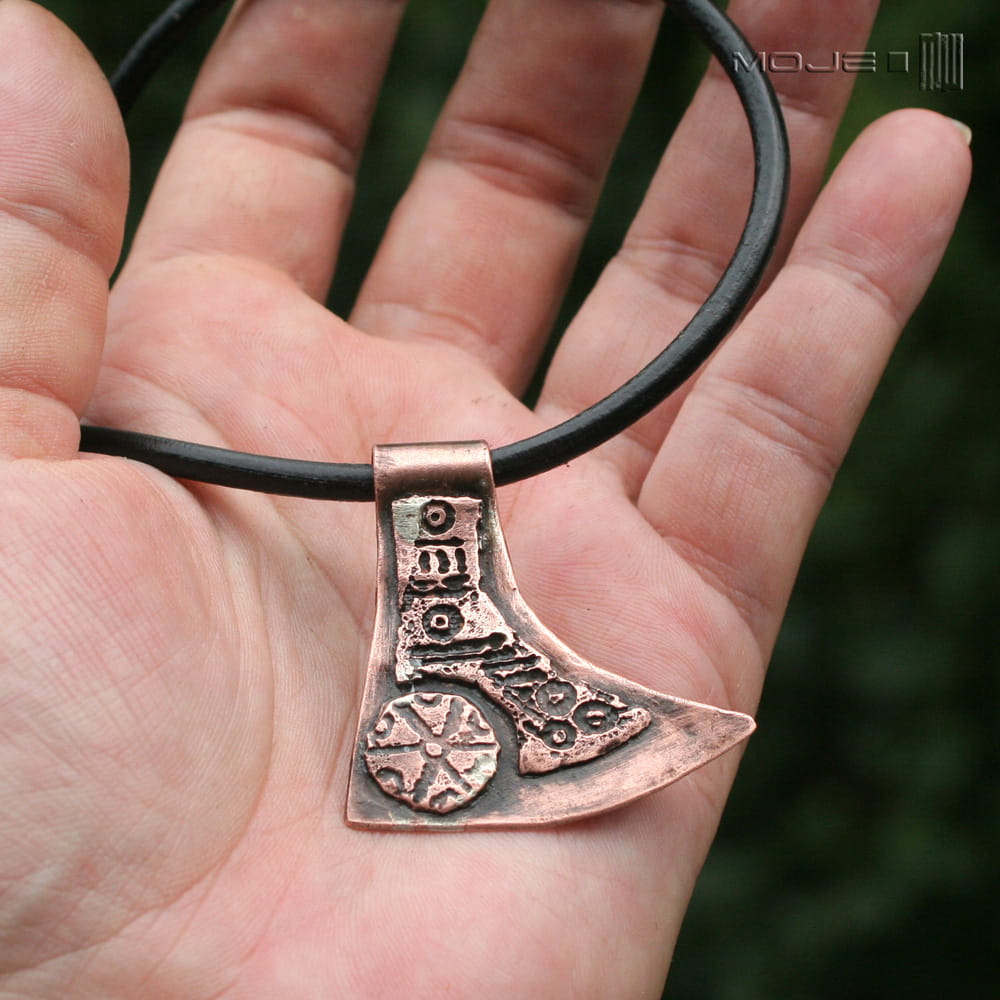 Wisiorek wzorowany na starosłowiańskich (a także nordyckich) amuletach przedstawiających topór Peruna.