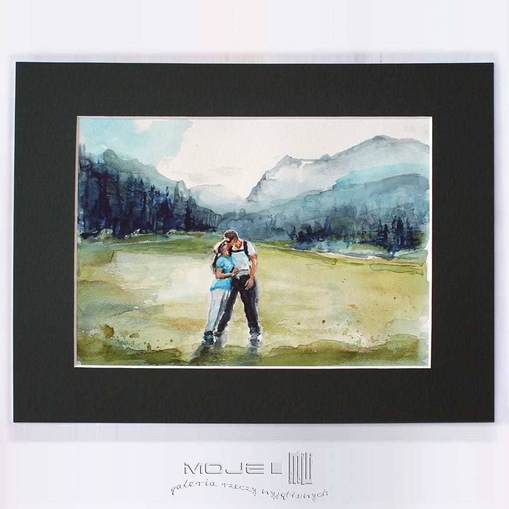 Barwna choć bardzo stonowana akwarela, namalowana na papierze akwarelowym 300 g.